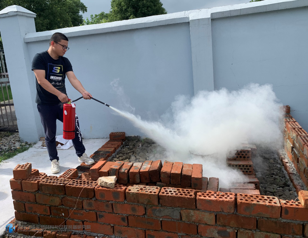 講解結束后,由安全員盧康帶隊,大家依次進行了滅火器使用實操訓練。