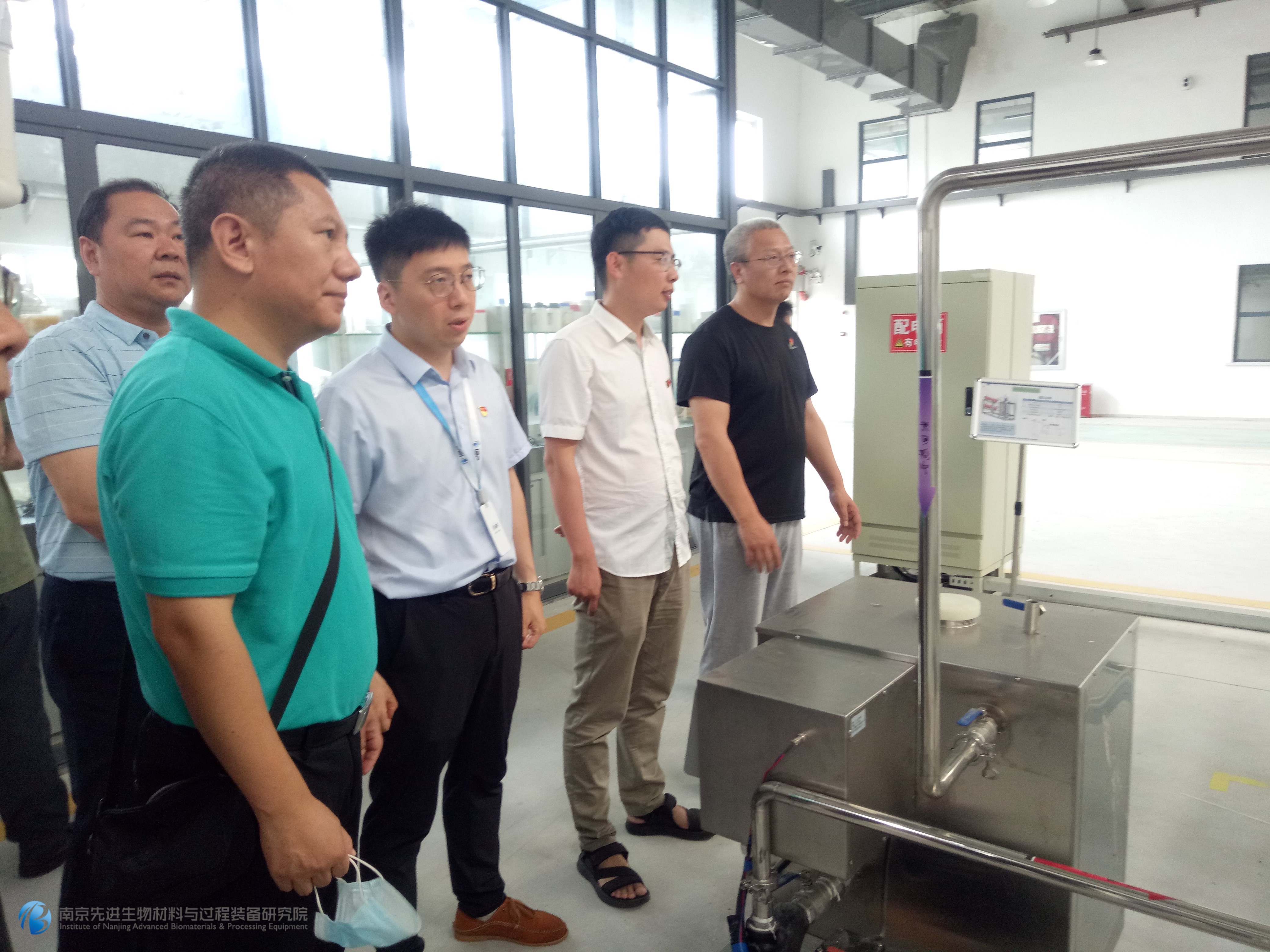 交流會后,季棟博士帶領(lǐng)大家參觀了研究院展廳、實(shí)驗(yàn)室、中試車間,生動詳細(xì)地介紹了微流場反應(yīng)技術(shù)、生物基材料等相關(guān)研究工作,并與劉所長一行探討雙方后期在項(xiàng)目運(yùn)行以及分析測試等方面開展合作的可能性。