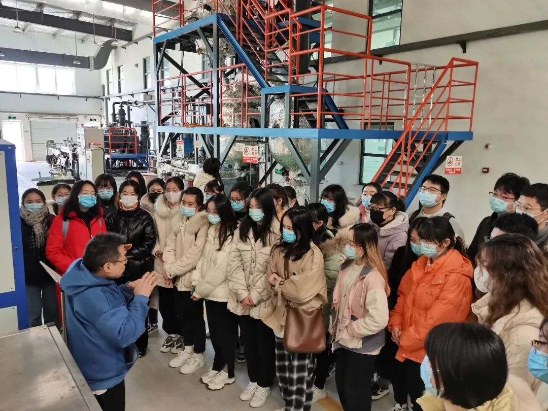 隨后,張楷博士帶老師和學生們來到了我院裝備研制中心、工藝開發中心和分析測試中心,在裝備中試車間,張楷博士介紹了微流場反應設備的構造、特點和應用場景進行了講解。